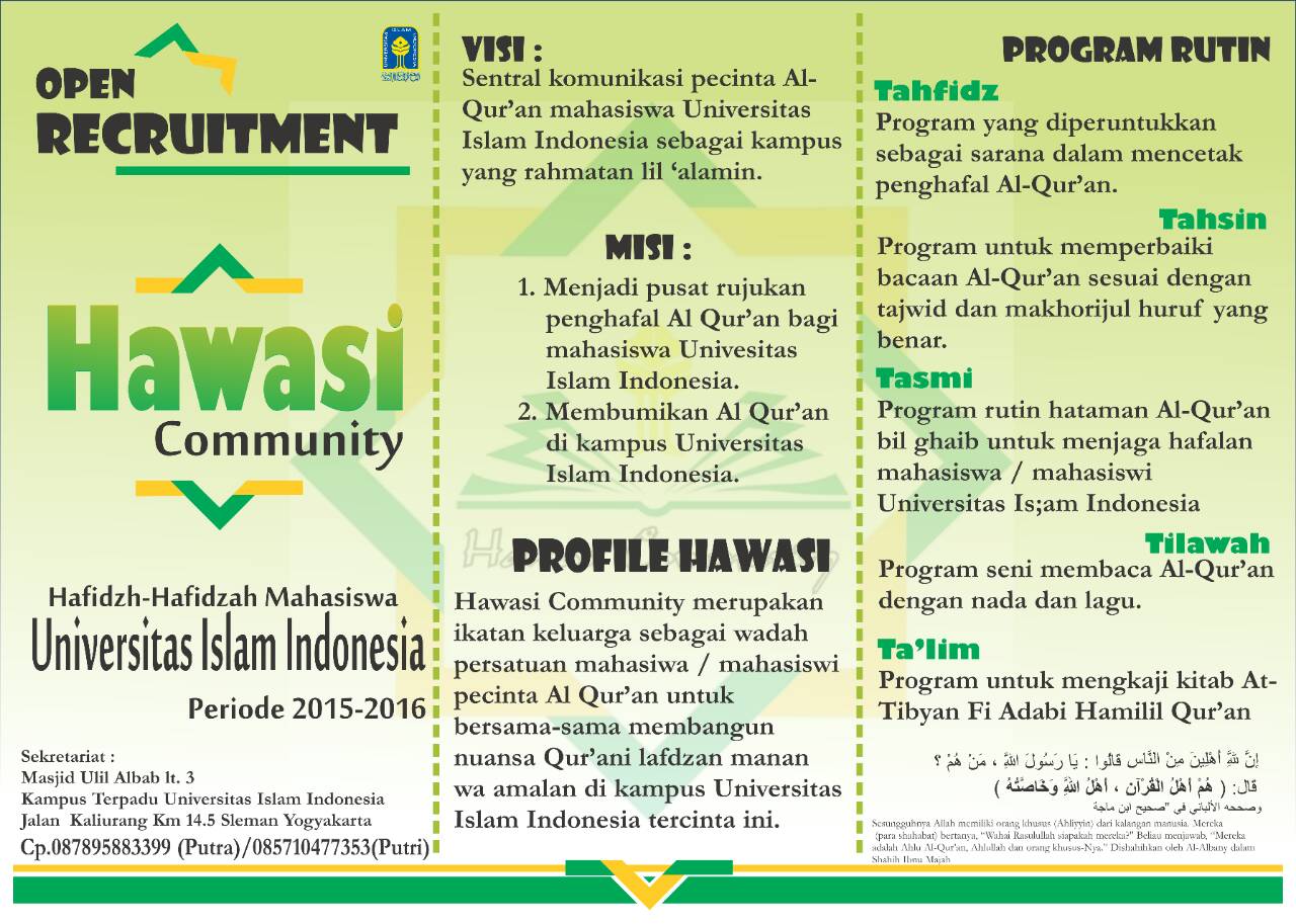 Pengumuman Seleksi : 16 September 2015 via sms dan di upload di keluarga-hawasi.blogspot.com